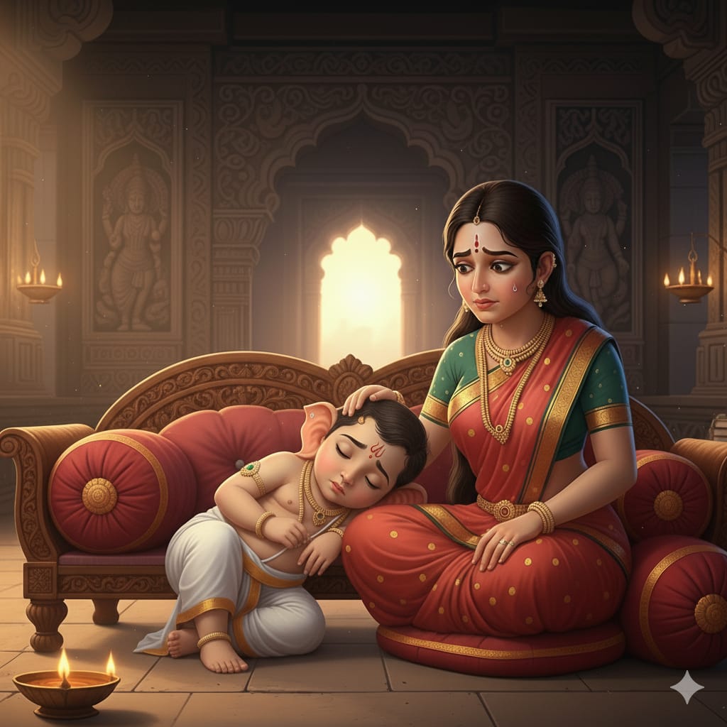 ‘गणूबाळाऽ काय झालं?’ गणेशाच्या डोक्यावरून हात फिरवत तिनं विचारलं.